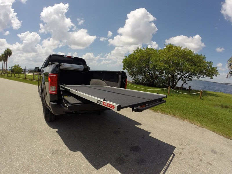 BEDSLIDE is simply a better way to access your truck bed by turning it into an easy-access drawer. No more crawling around to get to your tools, gear or supplies. Simply grab the handle and pull, and the BEDSLIDE rolls all of your cargo out to you—saving time, effort and back pain.