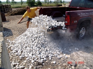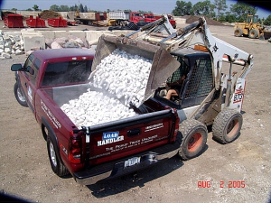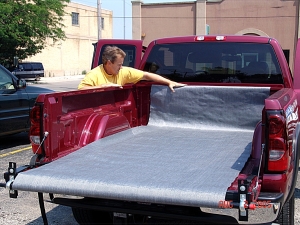 Spare yourself the backbreaking work of unloading sand, clay, trash, equipment, hay bales, feed bags, dirt, furniture and rock. The LOADHANDLER consists of a heavy-gauge poly fabric rolled onto a steel bar that runs the length of the tailgate. To load, just unroll the dragsheet to cover your truck bed. To unload, lower the tailgate, insert the crank handle into the end of the roller bar and rewind the dragsheet. The LOADHANDLER unloads up to 3000 lbs. of any kind of material from your pickup truck in 30 seconds.