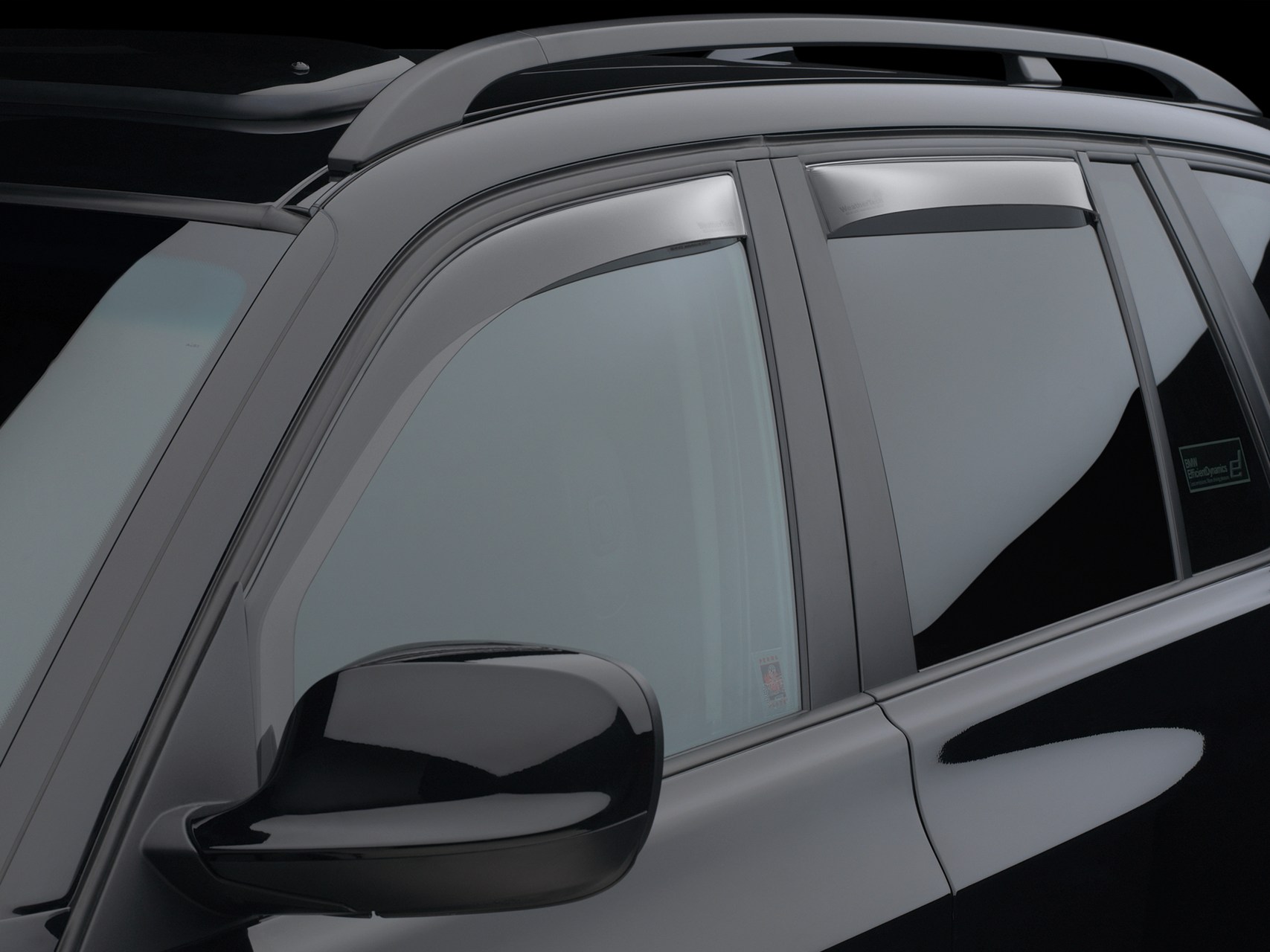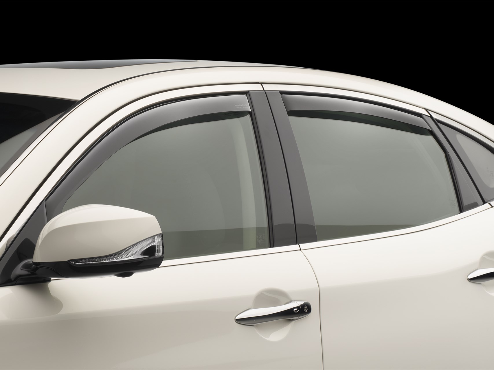 Side Window Deflectors are custom fit, in-window-channel, rain and debris guards that allow fresh air to enter and leave the vehicle while having the window still cracked during harsh weather. Side Window Deflectors also help reduce wind noise and allow interior heat to escape.