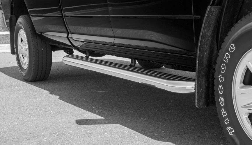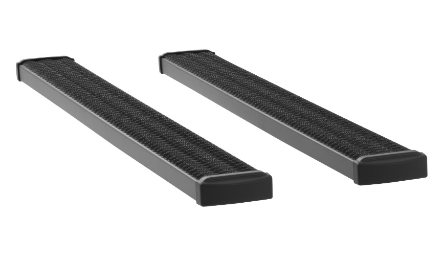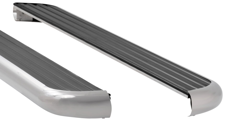 No matter the terrain or season of the year, LUVERNE running boards are made to keep up with your hardworking lifestyle. Grip Step™ 7" running boards feature a unique expanded metal tread pattern for superior traction and a 7" x 2 1/2" rectangular design for reliable footing. They are built from aluminum alloy for exceptional, rust-free strength, and are simple to install using high-strength vehicle-specific brackets. MegaStep® 6 1/2" running boards are the ultimate combination of side accessories, featuring the look and styling of popular nerf bars with the comfort and convenience of a running board. They have 5" wide treads that extend the full length of the board, and they feature a strong, lightweight aluminum core with a stainless steel trim for a bright, clean accent.