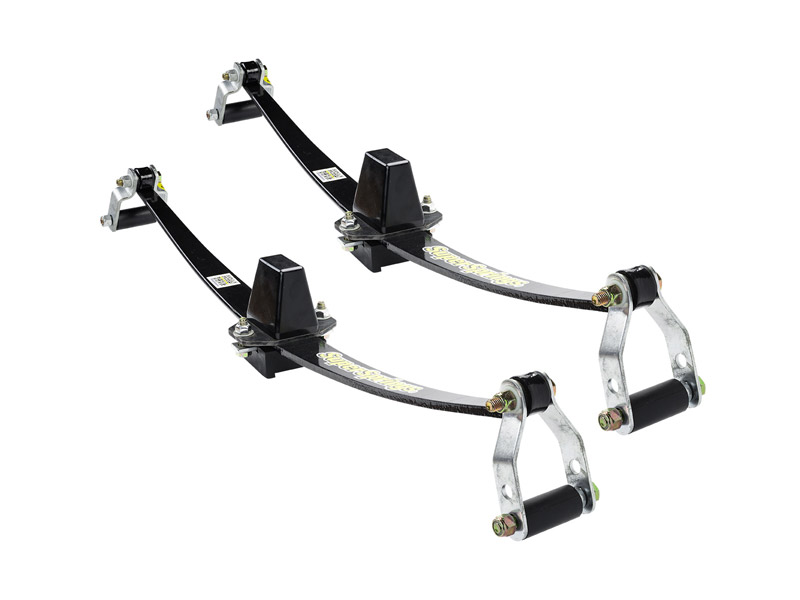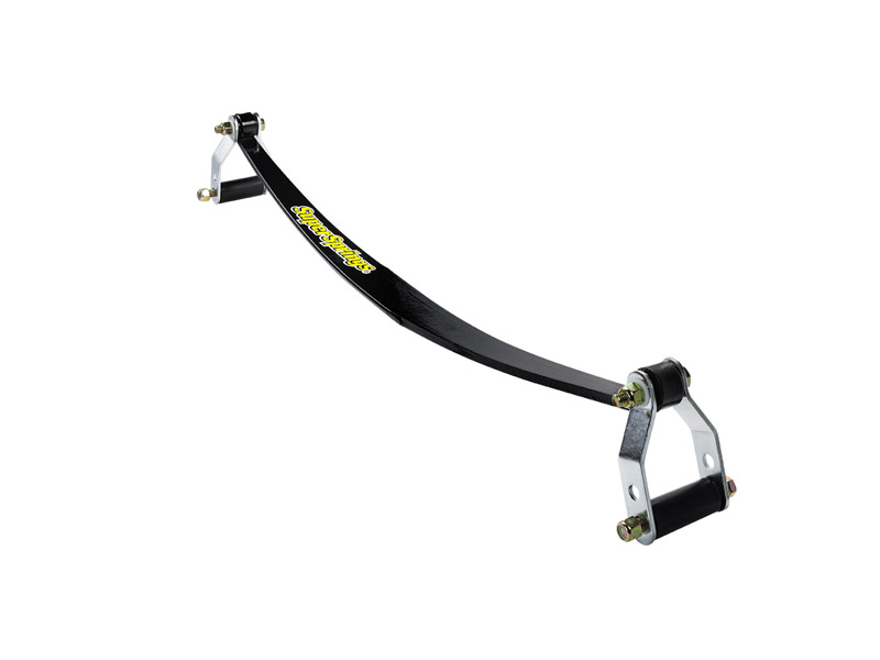 SuperSprings® are a unique and patented self-adjusting suspension stabilizing system for vehicles with rear leaf springs, designed to level loads and reduce body roll. SuperSprings provide users extra load support and reduce body roll without compromising ride quality. They are manufactured using a variety of different sized springs to support multiple applications. All SuperSprings are manufactured in the USA from SAE5160H high grade, shot peened steel.