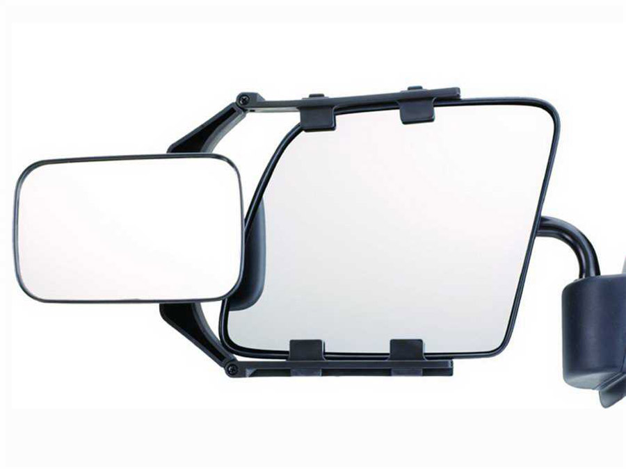 - Universal towing mirrors clip onto existing mirrors for quick setup