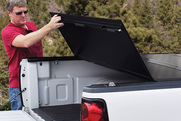 If you're looking for a hard truck bed cover that does it all, the BAKFlip Series is it. From sleek contemporary styling to state of the art functionality, BAKFlip hard folding truck bed covers are sure to impress. Constructed from tough aluminum or composite panels, all BAKFlip covers offer tough security, operate easily from either side of the truck, perform in all climates, provide full access to stake pockets, and most importantly, offer 100% unobstructed access to your entire truck bed. Hauling large items in your truck is never a problem. The ability to lock and load is finally an option with the patented features that only a BAKFlip can offer.