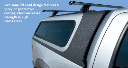 The Overland Series truck cap offers a tougher, more rugged look to complement today's trucks. It's unique two-toned off-road design features a spray-on protective coating which increases strength in high stress areas.
